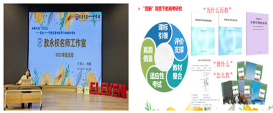 4.敖永权名师工作室成员杨媛老师对本学期的工作进行总结。在“四新”背景下进行高考研究,工作室对高考生物试卷进行细目表分析与逐题分析,用以指导生物教学。杨老师汇报了工作室成员在学科赛事和教育科研方面的收获与成长,也让我们感受到他们破浪前行的力量。