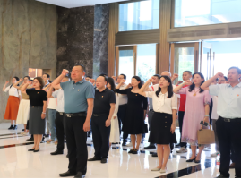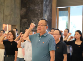 在基地的一楼序厅,全体人员在学校党委书记章显林的领誓下重温入党誓词,坚定理想信念,牢记初心使命,对照承诺,终身践行,时时检视自我,不断校正前行。其后,全体人员集体聆听了习近平总书记的告诫,进一步坚定了正确的政治方向和永远跟党走的政治信仰。