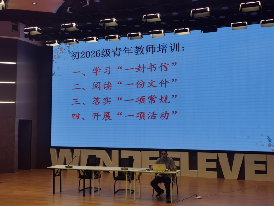9月14日上午,初中第二党支部在江南新城校区科技报告厅召开温馨加油吧系列活动之青年教师会,本次会议由支部组织委员田卫主持,支部书记刘宇、德育组长李慧以及2026级全体青年教师参加了此次会议。