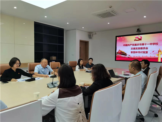 2023年10月18日14点30分,文德党支部10月党员大会在文德中学江南新城校区圆桌会议室召开,文德支部全体党员同志参加,本次会议由支部书记章显林同志主持。