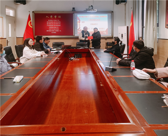 最后,刘宇书记为十二月过政治生日的党员同志颁发生日贺卡。他也在马果同志转正这一重要时刻带领全体党员重温入党誓词。希望支部党员不忘入党初心,牢记职责使命,立足本职岗位,在期末复习的重要阶段,积极发挥党员先锋模范作用,认真对学生做好辅导,勇担青春使命,继往开来,勇毅前行。
