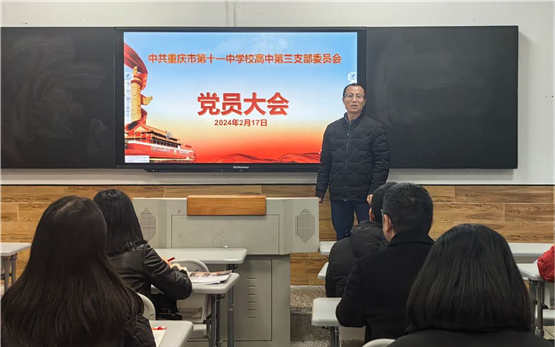 2024年2月17日,高中第三党支部2月党员大会在博文楼510教室召开,由赵明贤同志担任主持人,支部全体党员参与本次会议。
