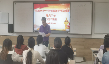 5月10日上午,初中第三党支部召开了本月的党员大会,会议由支部书记赖德东主持,初中第三党支部全体党员参会。