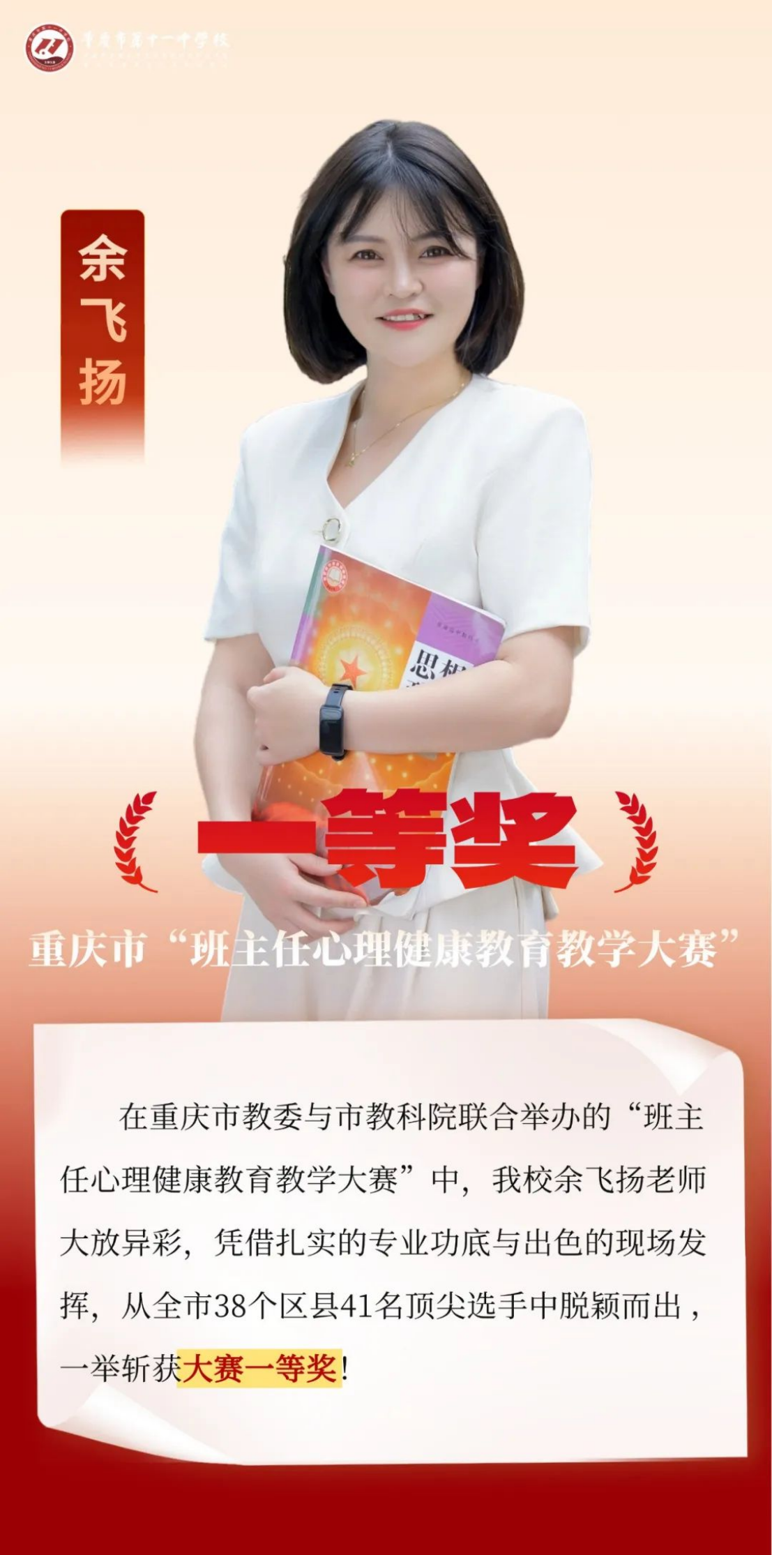 我校余飞扬老师荣获重庆市“班主任心理健康教育教学大赛”一等奖
