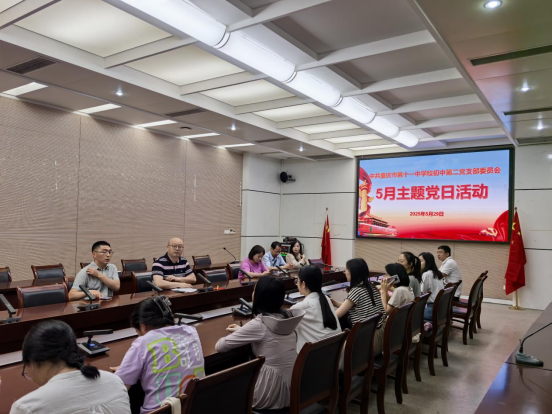 为进一步强化党的思想建设,增强党组织凝聚力,5 月 29 日下午,初中第二党支部在圆桌会议室开展五月主题党日活动,全体党员及入党积极分子齐聚一堂参与这次的主题党日活动。