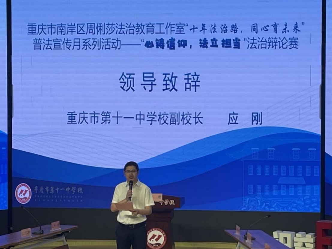 活动伊始,副校长应刚在致辞中谈到,重庆十一中作为一所具有深厚文化底蕴和优良教育传统的学校,始终坚持将法治教育融入日常教育教学中,积极探索多种形式的法治教育,着力培养学生的法治思维和法治意识。