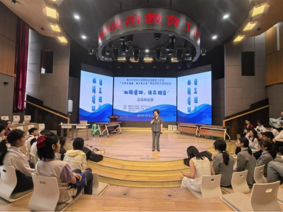 十年耕耘法治路,初心如磐护成长;同心共育未来梦,信仰为炬照担当!为培养青少年法治思维与逻辑表达能力,增强法治观念与责任担当,5月30日,“心铸信仰,法立担当”辩论赛在我校识益演播厅举行。此次活动由南岸区人民法院、南岸区教育委员会主办,周俐莎法治教育工作室、周妈青少年法治教育服务中心、学校战锋辩论社和知行法治社承办。