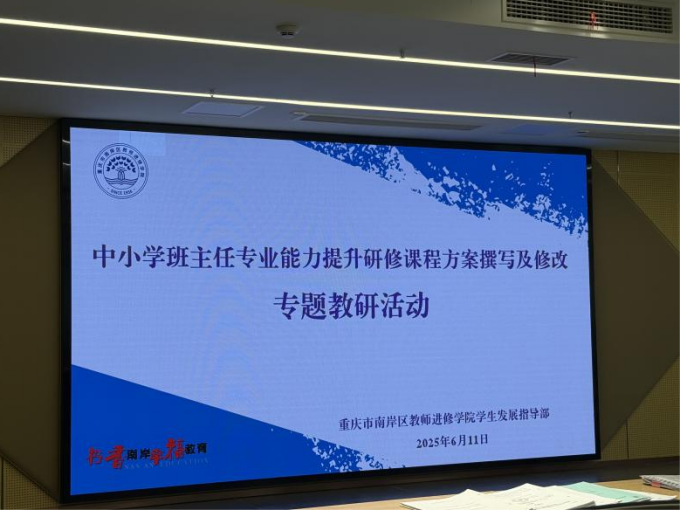6月11日,南岸区教师进修学院精心组织开展了中小学班主任专业能力提升研修课程方案撰写及修改专题教研活动,南岸区德育教研员鲁雯老师担任会议主持人。