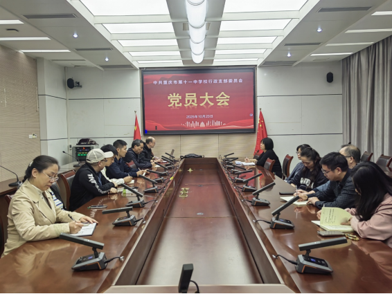 2025年10月23日,重庆市第十一中学校行政党支部成功举办“铸牢中华民族共同体意识 夯实育人根基”主题党日活动。本次活动通过系统学习习近平总书记重要论述及教育领域重要讲话精神,并特别设置专题党课环节,为学校高质量发展进一步统一了思想、凝聚了力量。会议由党支部书记高勇同志主持,支部全体党员参加。