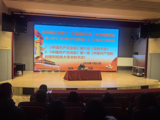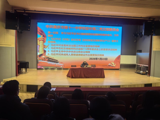 为强化党建引领教育教学实效,深入学习贯彻党的理论,2026年1月22日,初中第二党支部在识益演播厅开展一月主题党日活动,支部全体党员参会,会议由支部刘宇书记主持。